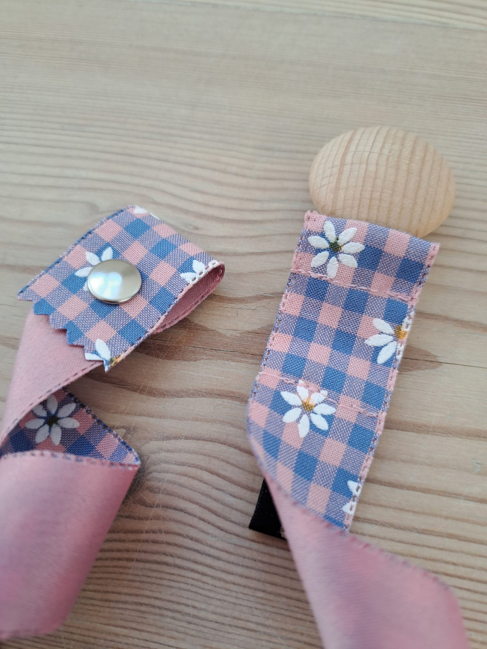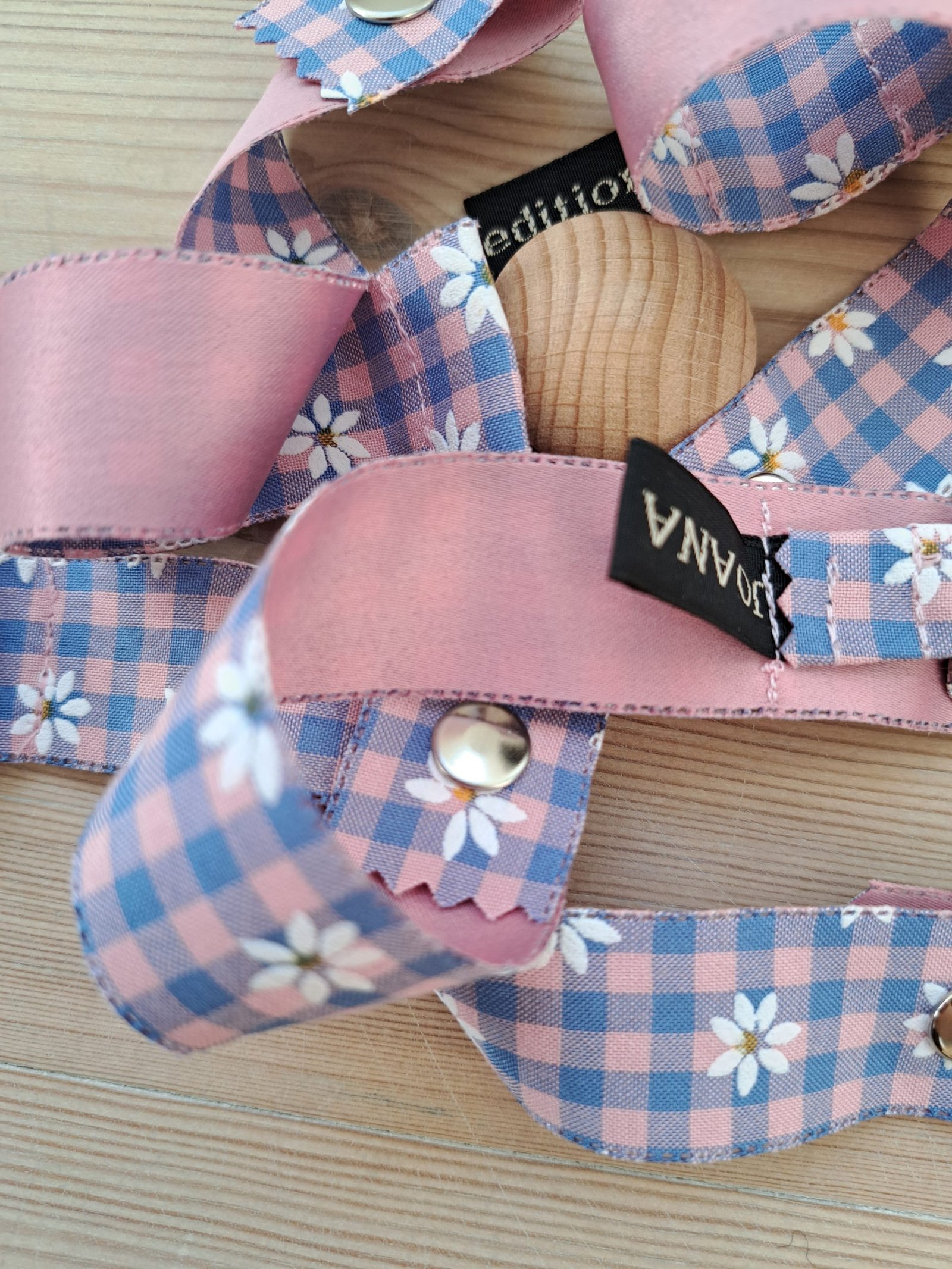 Lovingly handmade in Copenhagen out of double sided woven ribbon from the sweetest haberdashery shop in Barcelona, and using wooden EU certified clasps